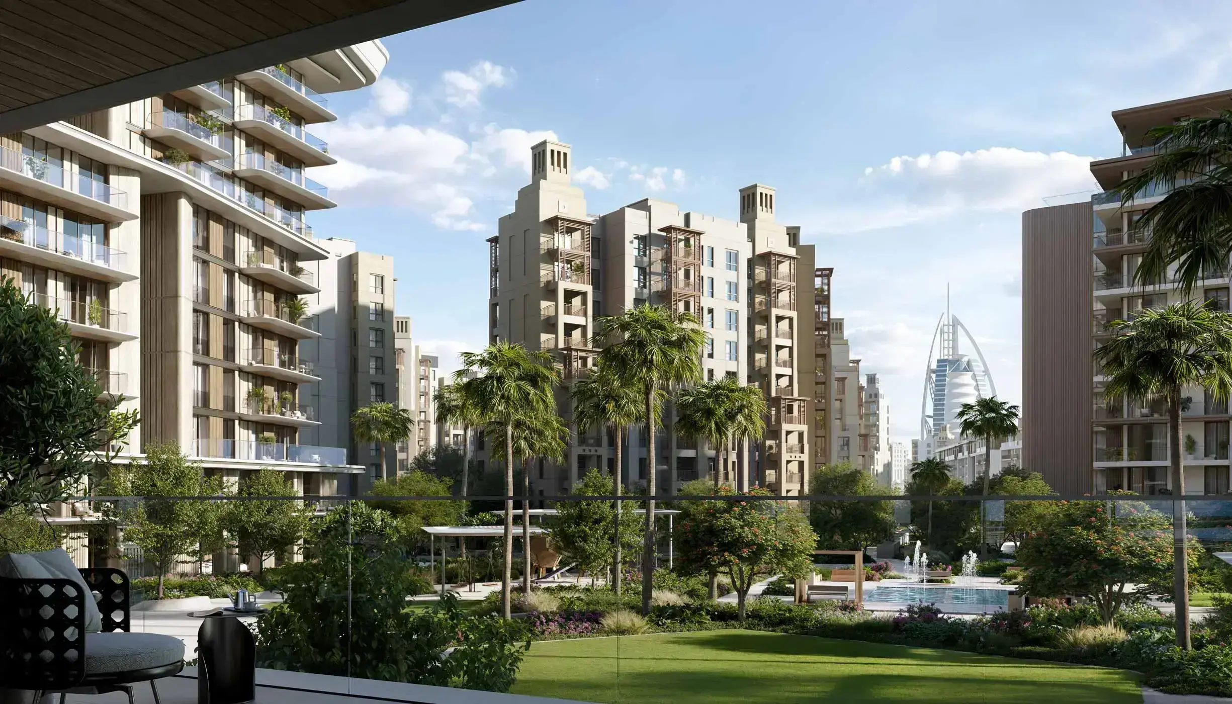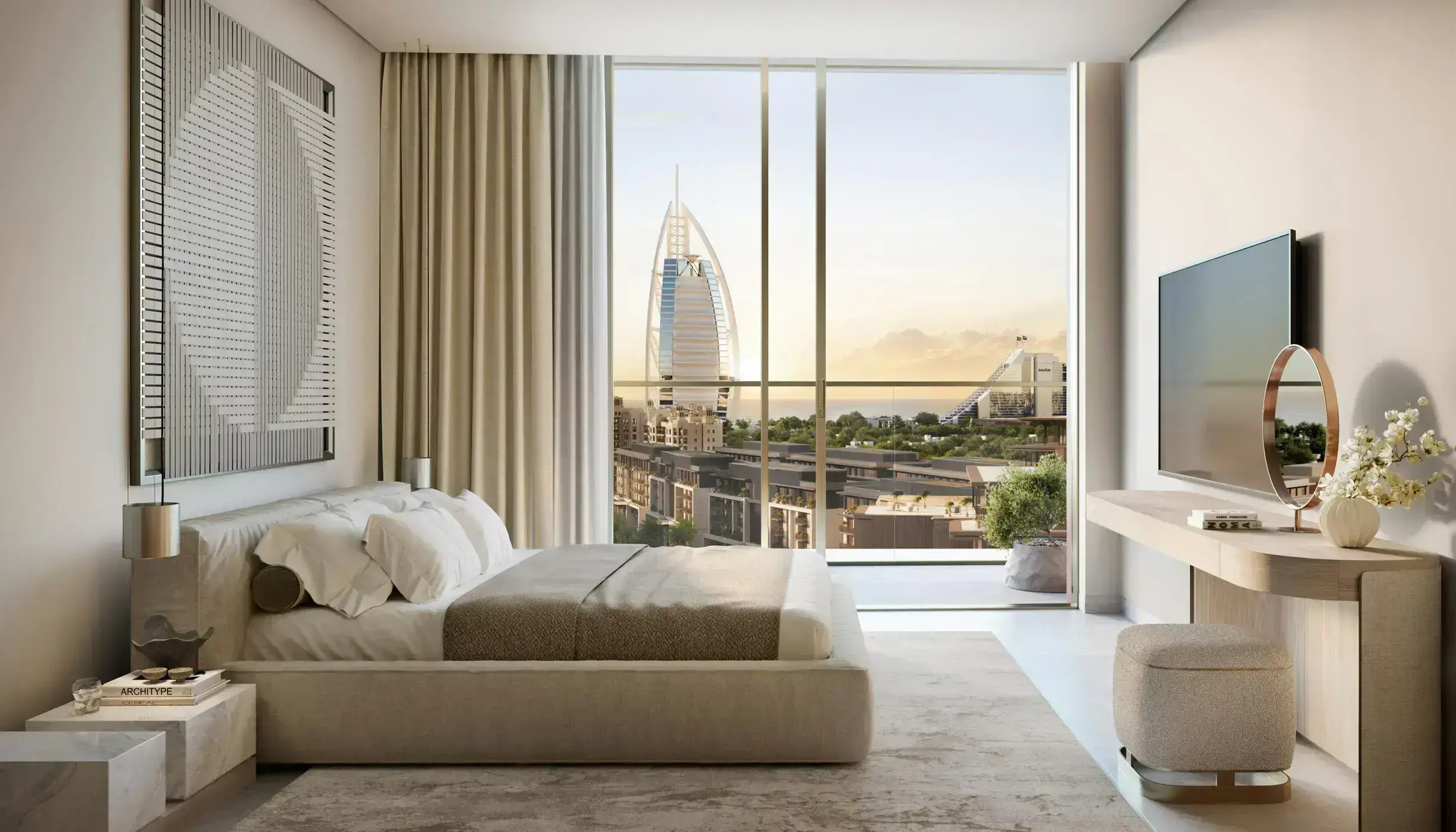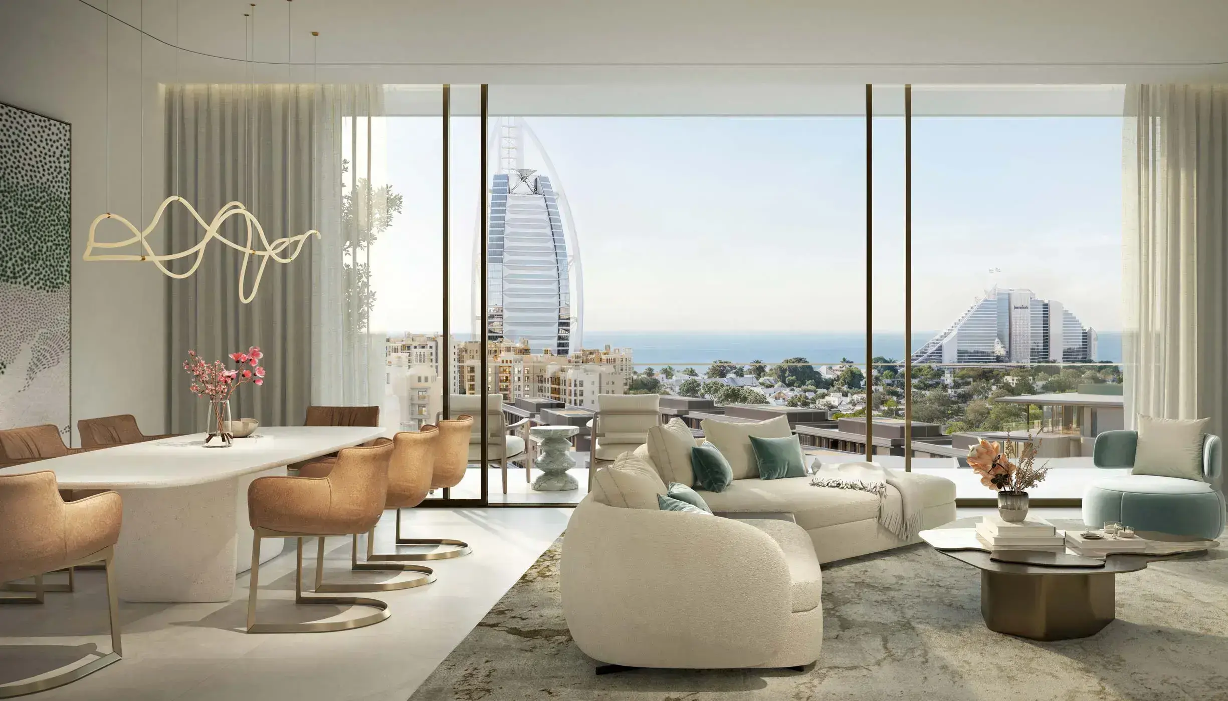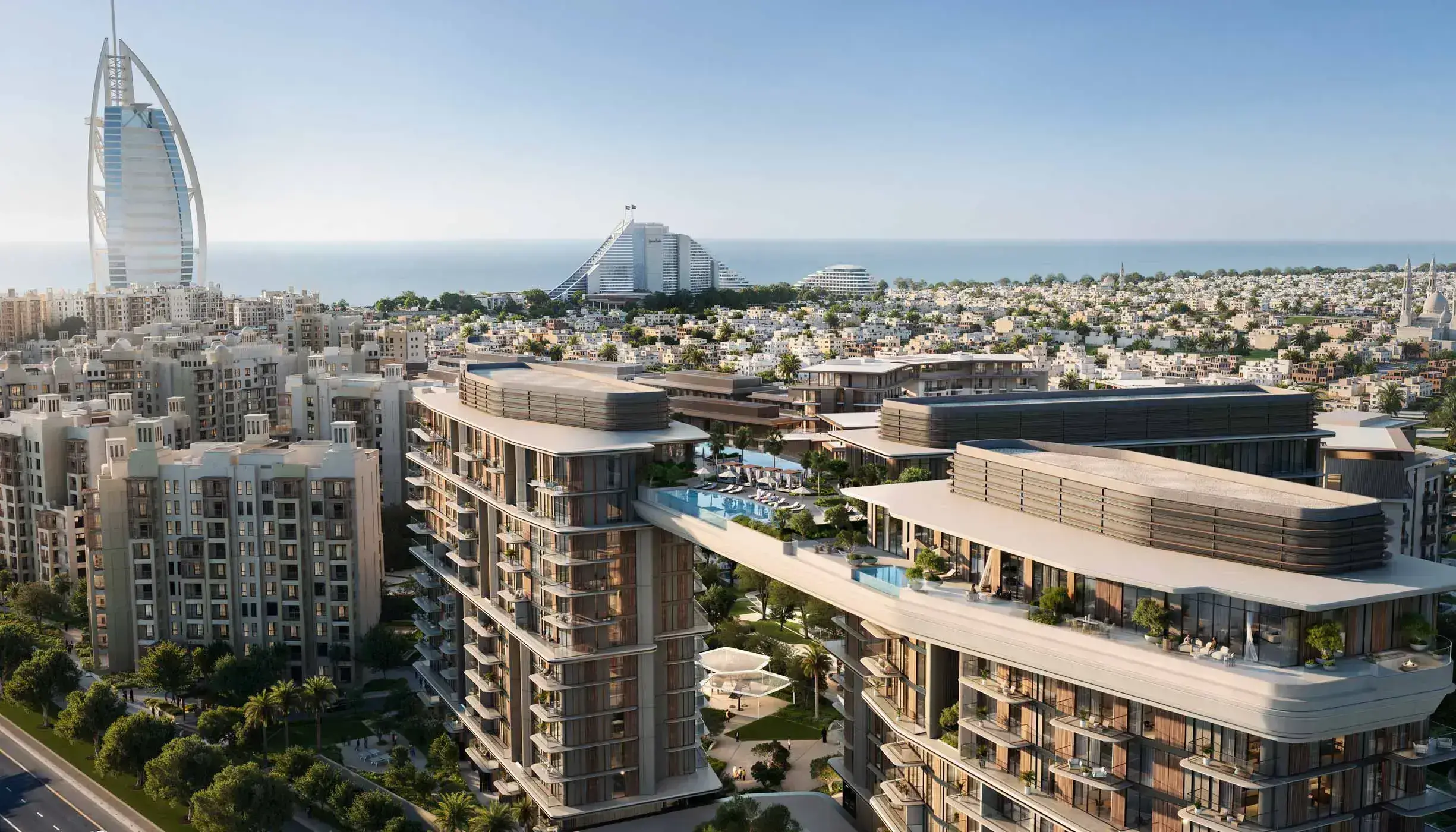 Рядом — пляжи Jumeirah и торгово-развлекательные зоны. Удобные выезды на основные магистрали; до ключевых деловых районов — короткая поездка на автомобиле.